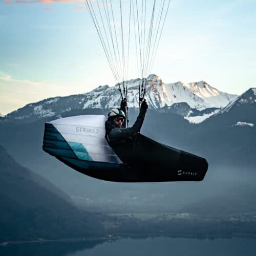 “The STRIKE range is back with a third generation, more refined than ever. With an outstanding comfort to weight ratio, the STRIKE3 delivers the best of both worlds for XC and bivouac adventures. Its fully redesigned foil improves aerodynamics and stability, delivering enhanced performance over long distances, whatever the destination.